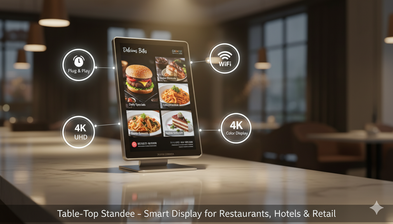 Premium brand image โ replaces paper signages with a modern digital solution that builds trust.